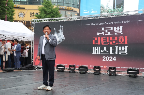 ▲ 글로벌라틴문화페스티벌에 참석해 축사를 전하는 박강수 마포구청장 |