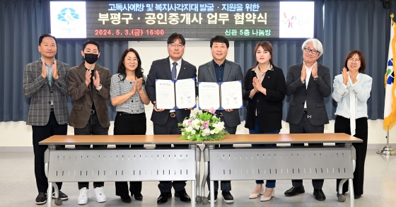 [뉴스서울] 부평구는 3일 구청 나눔방에서 한국공인중개사협회 인천광역시부평구지회와 ‘고독사 예방 및 복지사각지대 발굴’ 협력을 위한 업무 협약을 체결했다.