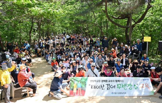 이번 교육에는 김영길 중구청장과 권택환 맨발학교 교장, 지역 주민 등 200여 명이 참여했다.
