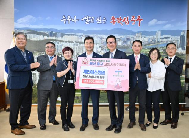 | ▲ 세민에스요양병원 청남나눔봉사회, 중구에 고향사랑기부금 320만 원 기탁 |