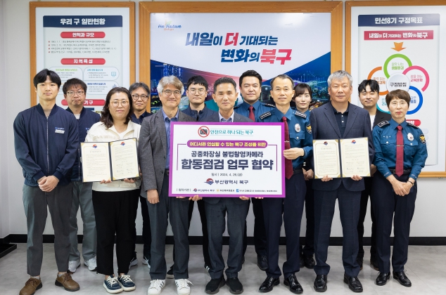[뉴스서울] 부산 북구는 지난 26일 북구청에서 부산북부경찰서, 부산교통공사 제2운영사업소 및 제3운영사업소와‘공중화장실 내 불법촬영카메라 합동점검’을 위한 업무 협약을 체결했다고 밝혔다.