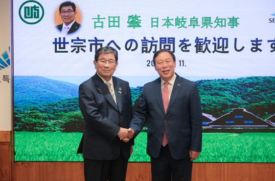 [뉴스서울] 최민호 세종특별자치시장이 11일 시청 세종실에서 후루타 하지메(古田 肇) 기후현 지사와의 첫 공식 면담을 통해 양 도시 간 협력을 다졌다.