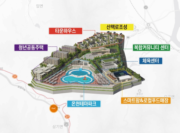 한편 민간기업의 참여도 활발하다. 입주민의 정주 만족도를 극대화하기 위해 민간기업과 컨소시엄을 구축하여 주거시설 조성할 예정이다. 특히 KT와 KT Engineering은 주거에서 인프라 시설까지 IOT 기반의 스마트 빌리지 구축에 참여해 주민 생활시설 안전과 편리함을 제공한다. 온천테마파크는 입주민들의 편의시설 도입과 직접 일자리 창출로 지역활력타운에 활력을 더할 것으로 기대된다. 기안레져와는 올해 초 업무협약을 체결했다.