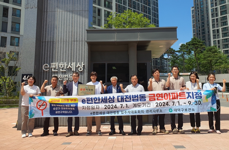 [뉴스서울] 대전 대덕구는 1일 법동에 위치한 ‘e편한세상 대전법동’을 대덕구 제3호 금연아파트로 지정했다고 밝혔다.