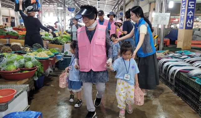 일자리 참여 어르신들은 장 보는 고객들의 편의를 위한 점포 안내와 더불어 최근엔 전통시장이 생소한 어린이들의 일일 견학 도우미로 나섰다.