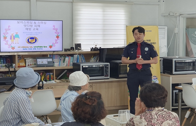 제주자치경찰단은 매년 꾸준히 증가하는 노년층 대상 보이스피싱 범죄에 효율적인 대응과 중산간마을 초고령화에 따른 치매예방을 위해 직접 마을경로당을 방문해 설명하는 ‘찾아가는 예방교육’을 실시했다.