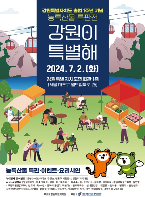 [뉴스서울] 강원특별자치도가 오는 7월 2일부터 7월 10일까지 서울 마포구 강원특별자치도민회관에서 농특산물 특판전 ‘강원이 특별해’ 행사를 개최한다.