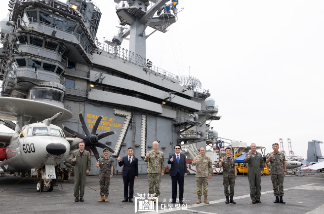 [뉴스서울] 윤석열 대통령은 6월 25일 오후 부산 해군작전기지에 정박 중인 미국 시어도어 루즈벨트 항공모함을 방문했다. 현직 대통령이 미국 항공모함에 승선한 것은 1974년 박정희 전 대통령, 1994년 김영삼 전 대통령에 이어 세 번째이다.