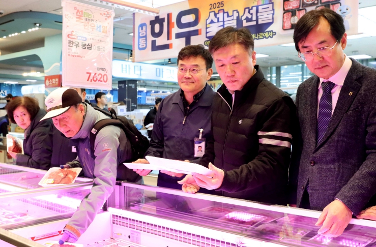 박범수 농식품부 차관은 농협, 한우협회, 한우자조금 관계자 등과 한우 할인행사 홍보 이벤트를 주관하는 한편, 축산물 코너를 둘러보며 한우를 비롯한 축산물 수급상황과 설 성수기 한우 가격 동향 등을 점검했다.