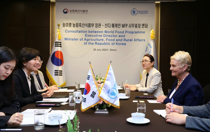 [뉴스서울] 송미령 농림축산식품부 장관은 30일 서울에서 신디 매케인(Cindy H. McCain) 유엔 세계식량계획(WFP) 사무총장과 면담을 갖고, 쌀 식량원조, 개발도상국 학교급식 지원 등 다양한 분야에서 세계식량계획과의 협력 방안을 논의했다.