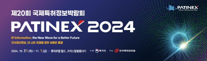 [뉴스서울] 특허청이 주최하고 한국특허정보원이 주관하는 ‘제20회 국제특허정보박람회PATINEX 2024’가 10월 31일부터 11월 1일까지롯데호텔 월드(서울 송파구) 크리스탈볼룸에서 개최된다.