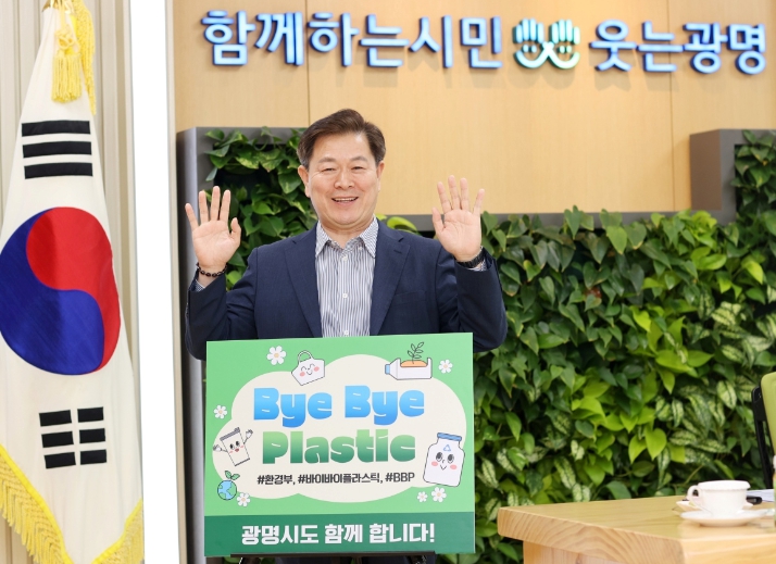 김미경 은평구청장의 지목을 받은 박승원 시장은 이날 ‘바이바이 플라스틱 챌린지, 광명시도 함께 합니다’라는 메시지를 전하며 챌린지에 동참했다.