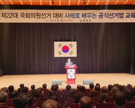 [뉴스서울] 영천시는 13일 시민회관에서 공직자 370여 명이 참석한 가운데 ‘제22대 국회의원 선거 대비 사례로 배우는 공직선거법 교육’을 실시했다.