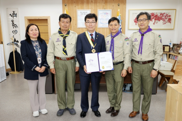 [뉴스서울] 윤건영 충청북도교육감이 23일 교육감 집무실에서 한국스카우트충북연맹으로부터 감사장을 전달 받았다.