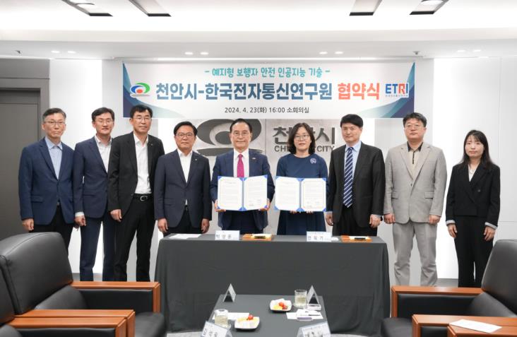 이번 협약에 따라 천안시는 한국전자통신연구원과 과학기술정보통신부의 ‘장기 시각 메모리 네트워크 기반의 예지형 시각지능 핵심기술 개발’ 과제인 예지형 보행자 안전 인공지능 기술을 추진한다.