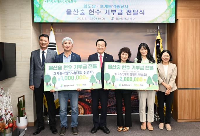 ▲ 북구 화도담·호계농약종묘사, 울산숲 헌수 기부금 전달 |