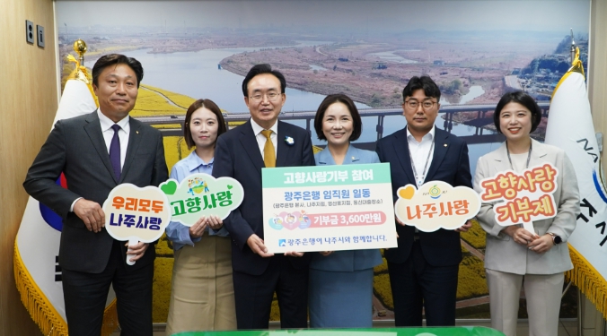 전라남도 나주시는 최근 광주은행 임직원들이 고향사랑기부금 3600만원을 기탁했다고 21일 밝혔다.
