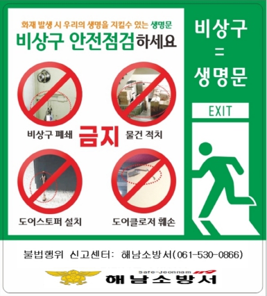 ▲ 해남소방서, 비상구 폐쇄 등 불법행위 ‘신고포상제’ 연중 운영 |