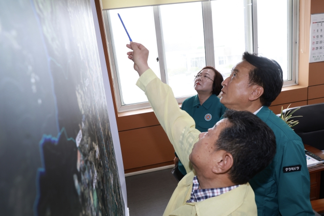 ▲ 김영환 충북도지사, 산사태 대피 현장 방문 |