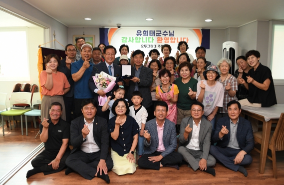 봉동 오투그란데 아파트 주민들은 감사의 뜻을 전하기 위해 이날 유 군수에게 감사패를 전달했다.