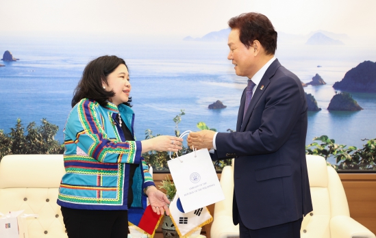 [뉴스서울] 박완수 도지사는 22일 경남도청에서 마리아 테레사 주한필리핀대사를 접견해 맘프(MAMF)를 계기로 경남과 필리핀의 경제교류 확대와 경남지역 관광 활성화 방안 등에 대해 논의했다.