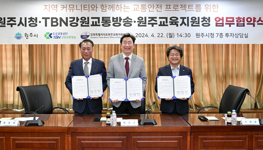 [뉴스서울] 원주시·원주교육지원청·TBN강원교통방송은 지난 22일 시청 7층 투자상담실에서 교통안전문화 확산을 위한 업무협약을 체결했다.