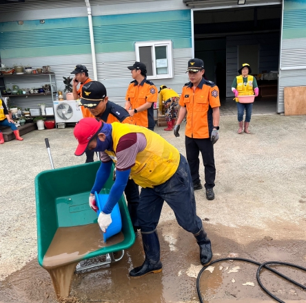 이번 현장지원은 소방서 직원과 의용소방대 등 100여 명이 참여한 가운데, 도목마을 등 침수 피해 주택들을 찾아 물에 젖은 가재도구 정리 및 실내‧외 토사 제거 등 전반적인 수해 복구 활동을 추진했다.