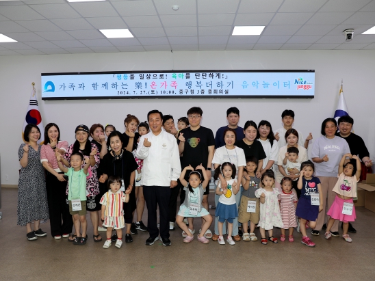 이번 프로그램은 지난 27일 중구청 중회의실에서‘가족과 함께하는 樂(락)! 온가족 행복더하기 음악놀이터’로 진행됐으며, 뮤직아이연구소(이찬미 강사 등)와 함께 중구민 육아가정 10팀이 참여했다.