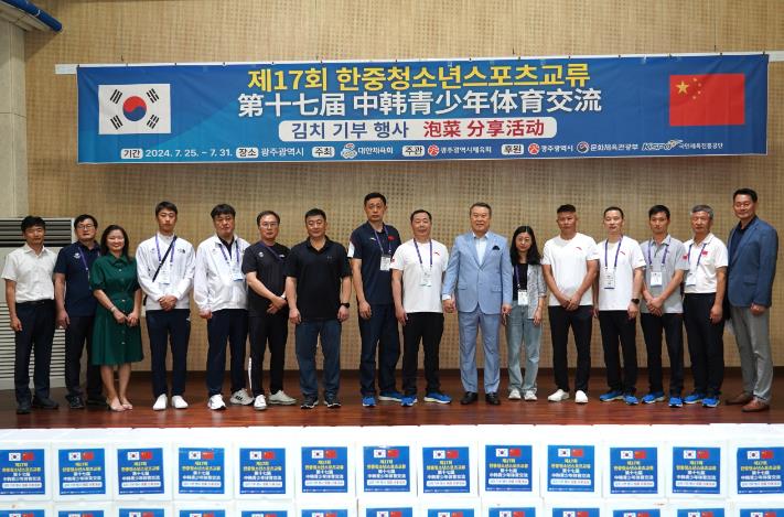 [뉴스서울] 제17회 한·중 청소년스포츠 교류대회에 참가하는 중국선수단 80여명과 허샤워붜 단장, 전갑수 체육회장은 광주광역시 김치타운을 방문하여 김치 체험행사에 참여했다.