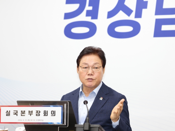 25일 오전 경남도청에서 열린 실국본부장회의를 주재한 자리에서 박 지사는 후반기 도정 핵심 가치인 ‘복지’, ‘동행’, ‘희망’을 언급하며 “경제가 성장하면 할수록 성장의 그늘은 더 깊어진다. 우리 주위에 힘든 상황에 처한 도민들이 많이 계신다”며 “전반기에는 경제 활성화에 중점을 뒀다면, 후반기 도정은 복지와 동행을 통한 도민의 행복 실현에 초점을 두겠다”고 밝혔다.