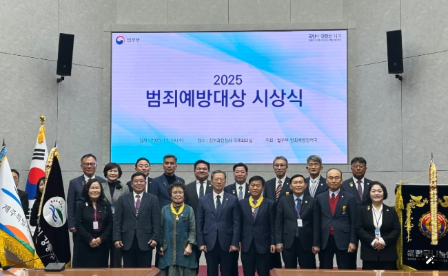 [뉴스서울] 제주특별자치도가 도민 참여형 범죄예방 정책의 우수성을 인정받아 법무부 주관 ‘2025 범죄예방대상’ 국무총리 표창을 19일 받았다.