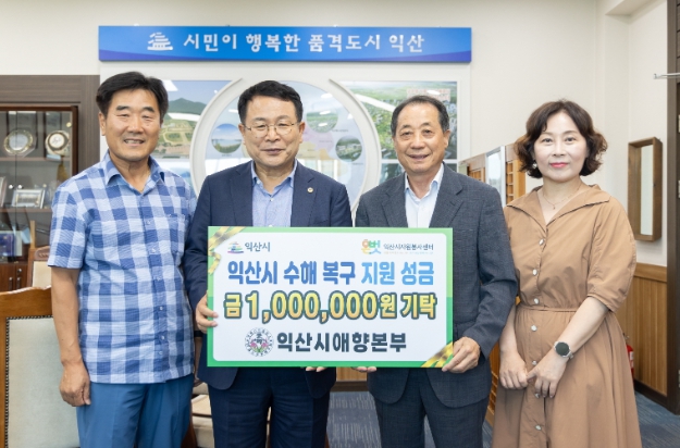 ▲ 익산시애향본부, 수해 복구 지원 성금 100만 원 기탁 |