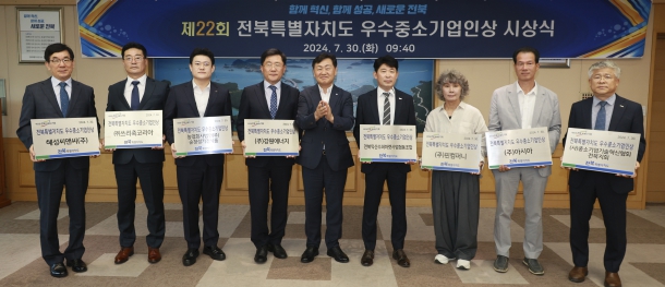 [뉴스서울] 전북특별자치도는 30일 전북특별자치도청에서 우수중소기업인 8명에게 공로패와 인증현판을 수여했다.