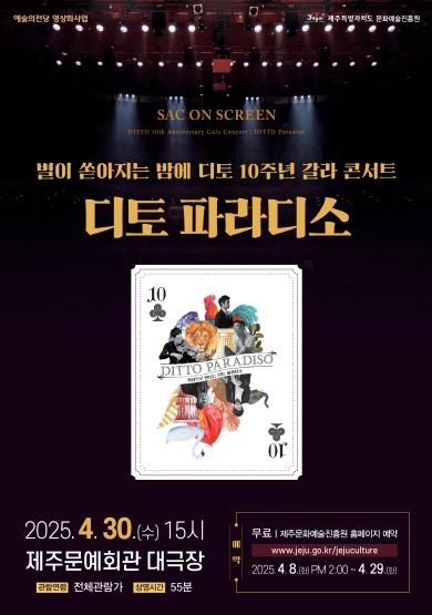 [뉴스서울] 제주특별자치도 문화예술진흥원은 2025년 서울 예술의전당 우수 공연 영상화 사업인 ‘SAC on Screen’ 공모에 선정돼 오는 30일부터 제주문예회관 대극장에서 대형 스크린을 통해 총 8편의 우수 공연을 선보인다.