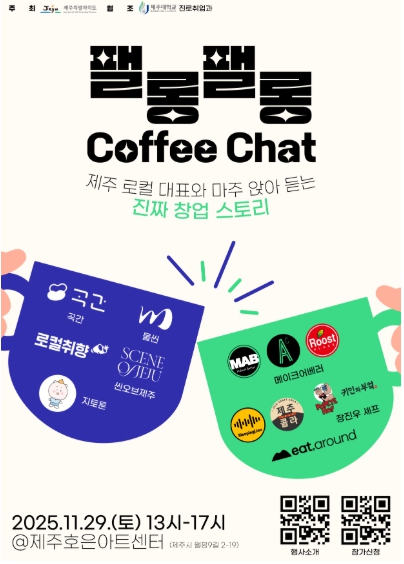 양기철 제주도 기획조정실장은 “청년자율예산으로 기획된 ‘팰롱팰롱 커피챗’은 로컬에서 치열하게 고민하고 도전해온 대표들의 생생한 경험을 나누는 자리”라며 “제주 청년들이 자신만의 커리어와 창업 경로를 구체화하고, 로컬에서의 새로운 가능성을 발견하는 계기가 되길 바란다”고 말했다.