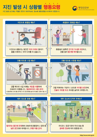 ▲ 지진 발생 시 상황별·장소별 행동요령 |