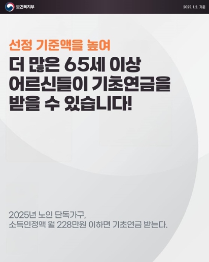 [뉴스서울] 2025년 노인 단독가구, 소득인정액 월 228만 원 이하면 기초연금 받습니다. 더 많은 65세 이상 어르신들이 기초연금을 받을 수 있습니다!