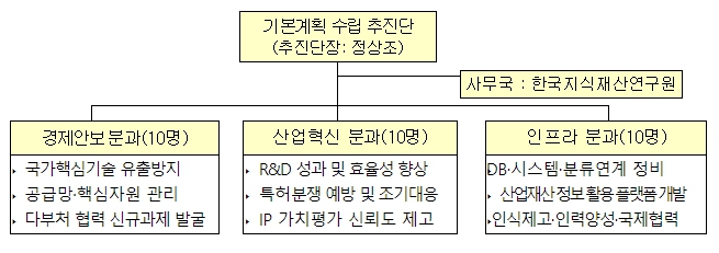 추진단은'산업재산 정보의 관리 및 활용 촉진에 관한 법률'의 제정에 따라, 산업재산 정보 활용 기본계획(이하 ‘기본계획’)에 전문가의 의견을 반영하기 위한 적극행정의 일환으로 구성됐다. 서울대학교 정상조 교수를 단장으로 산업계, 학계·연구계, 공공·관리 등 30여명의 위원이 경제안보, 산업혁신, 인프라 등 3개 분과에서 활동하게 된다.