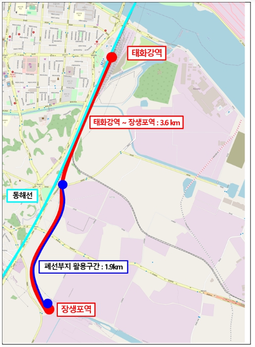 ▲ 장생포선 현황 및 폐선부지 활용구간 위치도 |