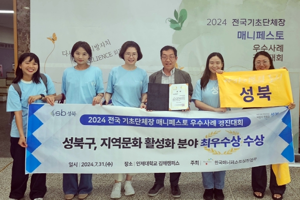 [뉴스서울] 서울 성북구가 한국매니페스토실천본부와 경남연구원이 주최하고 7월 31일 인제대학교에서 진행된 “2024년 전국 기초단체장 매니페스토 우수사례 경진대회”에서 지역문화 활성화 분야 최우수상을 수상했다.