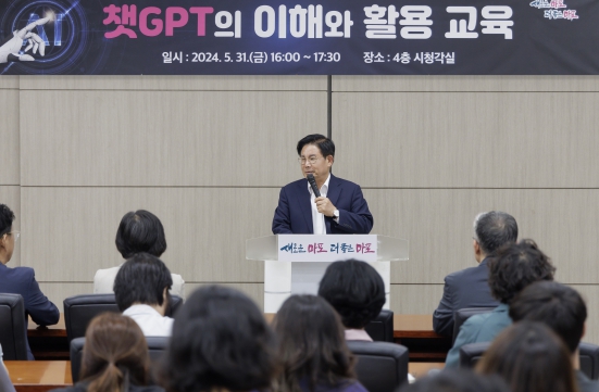 [뉴스서울] 박강수 마포구청장은 31일 오후, 마포구청 시청각실에서 직원 110여 명을 대상으로 열린 ‘챗GPT의 이해와 활용 교육’에 참석했다.