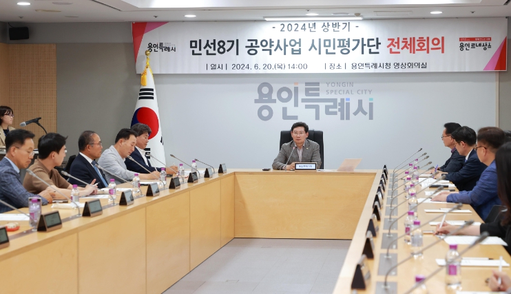 20일 시청 영상회의실에서 열린 공약사업 시민평가단 전체 회의에서 평가단은 지난해 말 기준 완료한 사업이 61건이었는데 6개월 만에 38건을 추가로 완료한 점에서 이상일 시장의 추진력이 돋보였다고 평가했다.