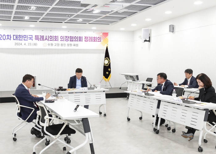 이날 정례회의에는 대한민국특례시의회 의장협의회장인 김영식 고양시의회 의장, 김기정 수원시의회 의장, 윤원균 용인시의회 의장, 김경희 화성시의회 의장이 참석했다.