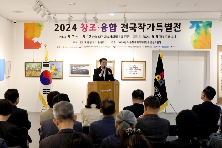 [뉴스서울] 대전시의회 이상래 의장은 9일 대전예술가의집에서 열린 ‘2024 창조·융합 전국작가 특별전 개막식’에 참석해 전시 준비에 노고를 아끼지 않은 대전창조미술협회 백향기 회장을 비롯한 관계자들을 격려했다.
