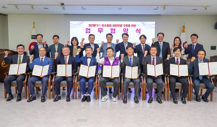 [뉴스서울] 서울 동대문구는 28일 한국동서발전, 한국에너지공단, 에너지엑스와 컨소시엄을 구성, 관내 4개 대학교(경희, 서울시립, 한국외국어, 삼육보건) 및 전통시장상인연합회와 함께 탄소중립 실현을 위한 ‘동대문구 건물에너지 효율화사업 업무협약(MOU)’을 체결했다고 밝혔다.