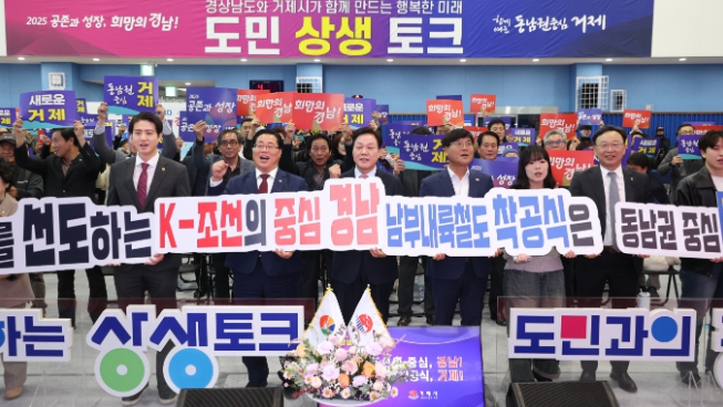 [뉴스서울] 경상남도는 18일 거제 반다비체육센터에서 열린 ‘도민 상생토크’에서 기업혁신파크, 광역교통망, 미래산업 등을 연계한 성장전략을 제시하며 지원 의지를 밝혔다.