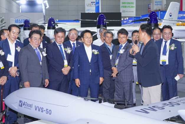 강 시장은 개막식 후에 엑스포 전시장에 마련된 국내외 207여개사 543개 부스의 신기술·신제품을 둘러봤다. 특히 현대차·기아의 전기차, 차량자동 운송 로봇을 비롯해 전기비행기, 도심항공교통(UAM) 시대의 드론과 경량비행기 등의 기술력을 확인했다.
