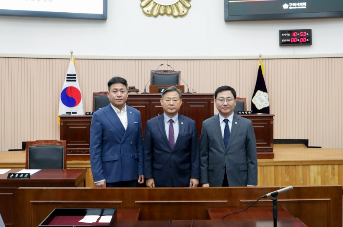 의장으로 선출된 가 선거구, 더불어민주당 소속 신동화 의원, 부의장으로 선출된 나 선거구, 더불어민주당 소속 김성태 의원, 운영위원장으로 선출된 가 선거구, 더불어민주당 소속 정은철 의원은 권봉수 의원, 양경애 의원, 김용현 의원, 김한슬 의원, 이경희 의원 등 5명 의원들과 함께 2024년 7월 1일부터 2026년 6월 30일까지 구리시민을 위해 활동한다.