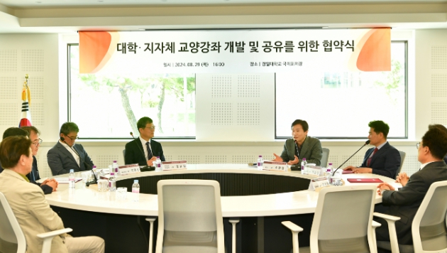 [뉴스서울] 경산시는 29일 경일대학교 국제회의장에서 경일대학교, 대구가톨릭대학교, 대구대학교 등 지역 대학들과 매일신문, 경북테크노파크, 교육 전문 방송사 EBS가 참여한 가운데 교양강좌 및 평생학습 콘텐츠 공동개발을 위한 업무협약식을 가졌다.