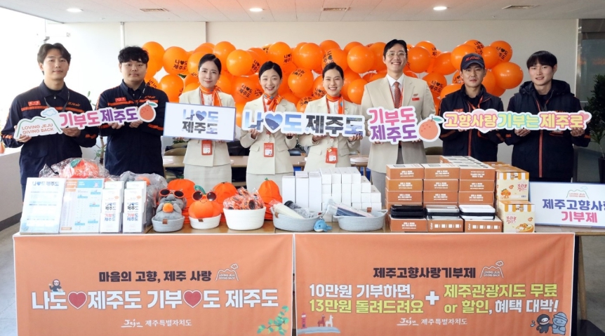 제주특별자치도는 4일 오전 11시 서울 강서구에 위치한 제주항공 서울지사에서 제주항공 임직원 등 1,000여 명을 대상으로 제주 고향사랑기부 홍보 캠페인을 펼쳤다.